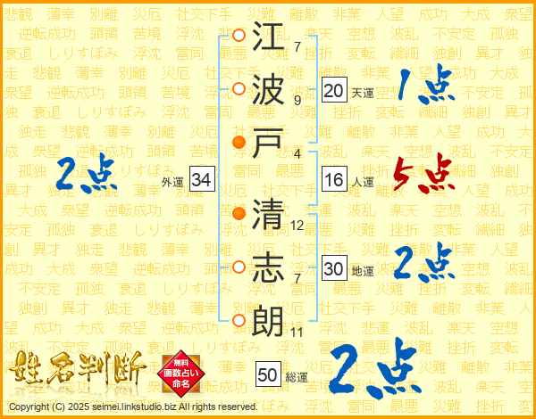 江(7画)波(9画)戸(4画) 清(12画)志(7画)朗(11画)