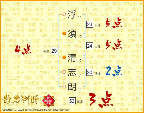 浮須清志朗さんの総運は53画の3点!