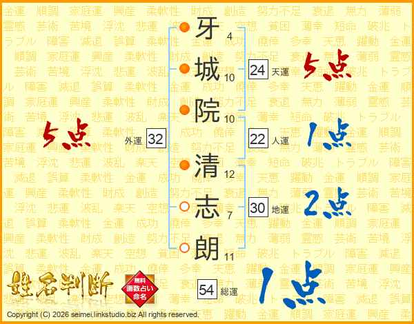 牙(4画)城(10画)院(10画) 清(12画)志(7画)朗(11画)