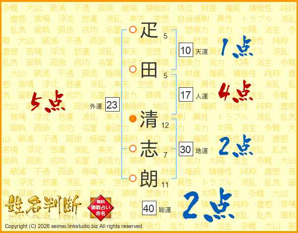 疋田清志朗さんの人運は17画の4点!