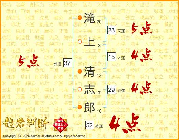 滝上清志郎さんの総運は52画の4点!