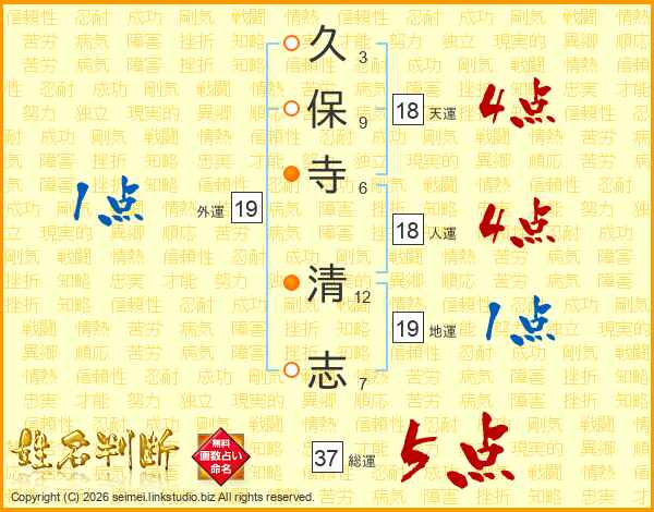 久(3画)保(9画)寺(6画) 清(12画)志(7画)