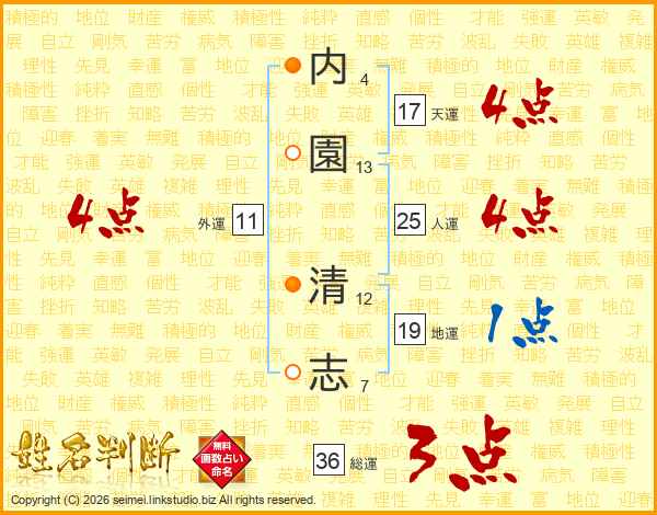 内(4画)園(13画) 清(12画)志(7画)