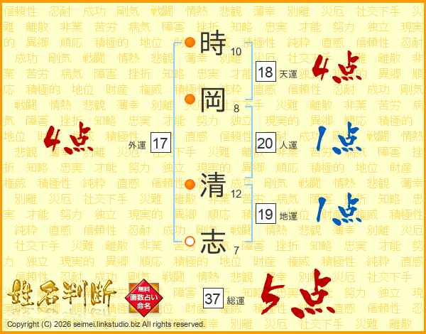 時岡清志さんの総運は37画の5点!