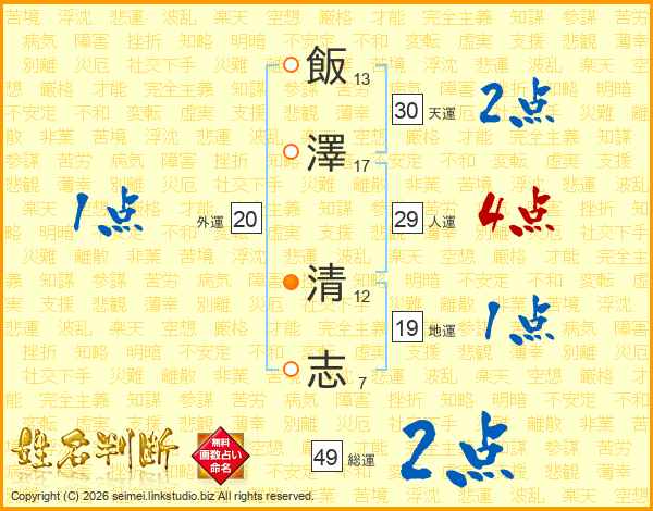 飯澤清志さんの総運は49画の2点!