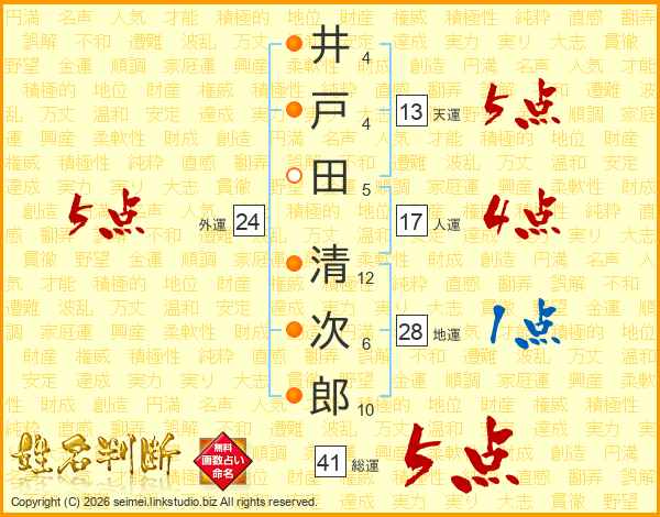 井戸田清次郎さんの総運は41画の5点!