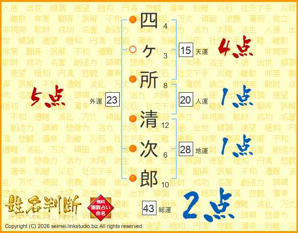 四ヶ所清次郎さんの総運は43画の2点!