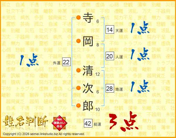 寺岡清次郎さんの天運は14画の1点!