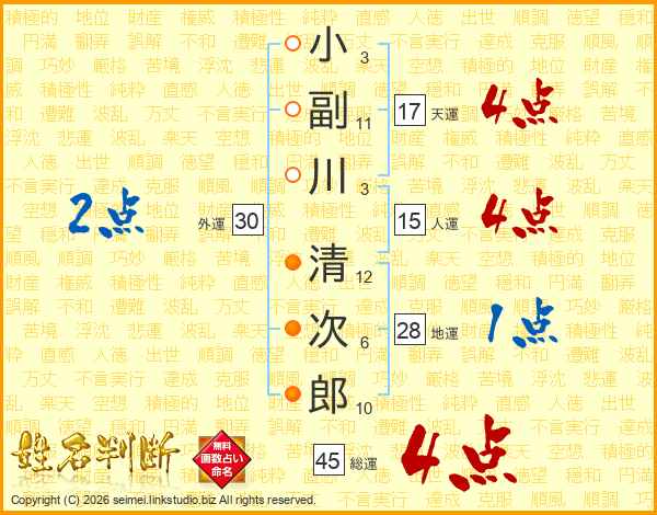 小副川清次郎さんの総運は45画の4点!