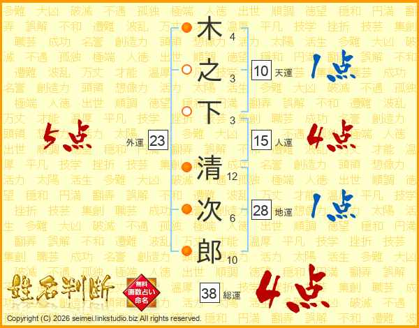 木之下清次郎さんの総運は38画の4点!