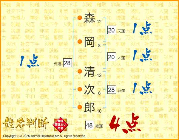森岡清次郎さんの総運は48画の4点!