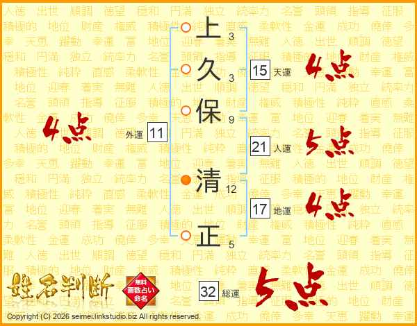 上久保清正さんの総運は32画の5点!
