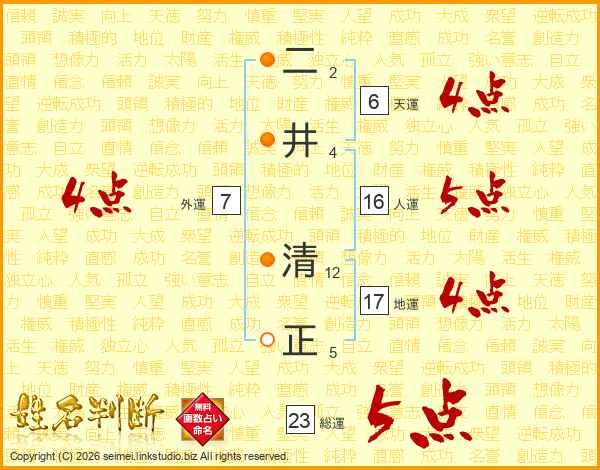 二井清正さんの総運は23画の5点!
