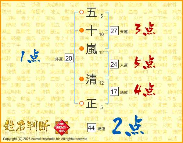 五十嵐清正さんの総運は44画の2点!