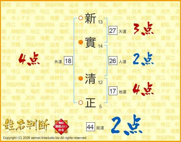 新實清正さんの総運は44画の2点!