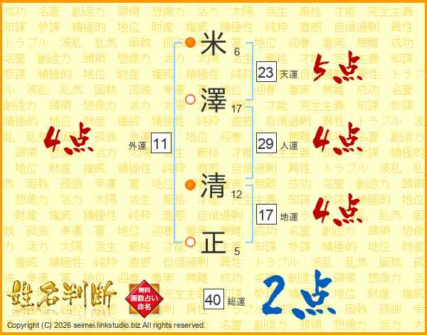 米澤清正さんの総運は40画の2点!