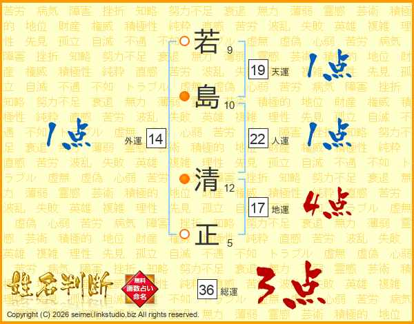 若島清正さんの総運は36画の3点!