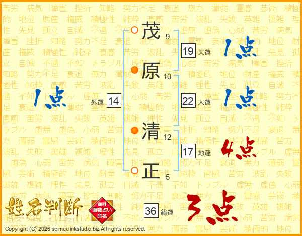 茂原清正さんの天運は19画の1点!
