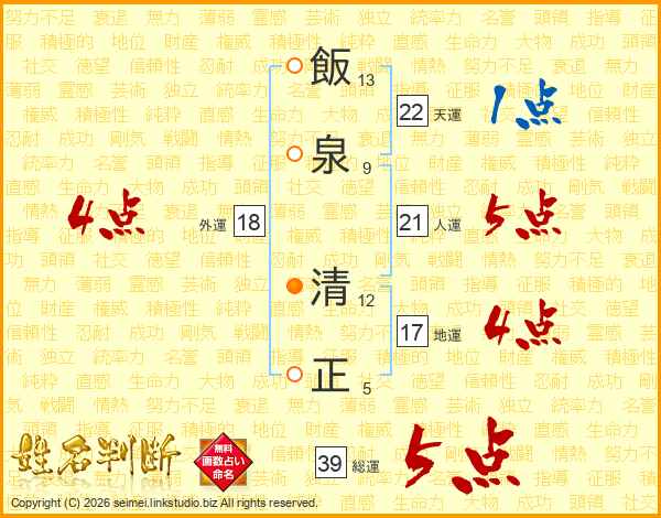 飯泉清正さんの総運は39画の5点!