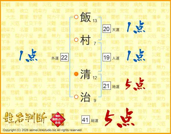 飯村清治さんの人運は19画の1点!