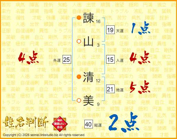 諫山清美さんの人運は15画の4点!