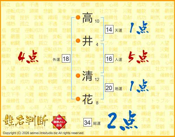 高井清花さんの天運は14画の1点!