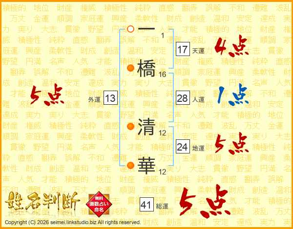 一橋清華さんの天運は17画の4点!