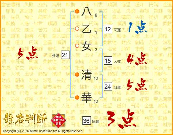 八乙女清華さんの外運は21画の5点!