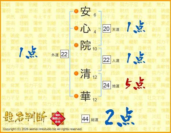 安心院清華さんの総運は44画の2点!