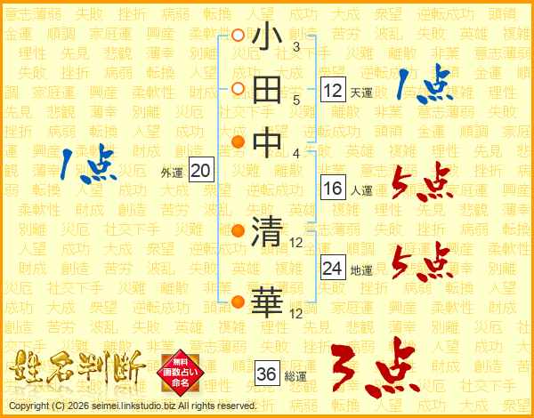 小田中清華さんの人運は16画の5点!