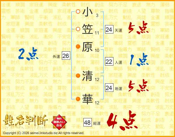 小笠原清華さんの総運は48画の4点!