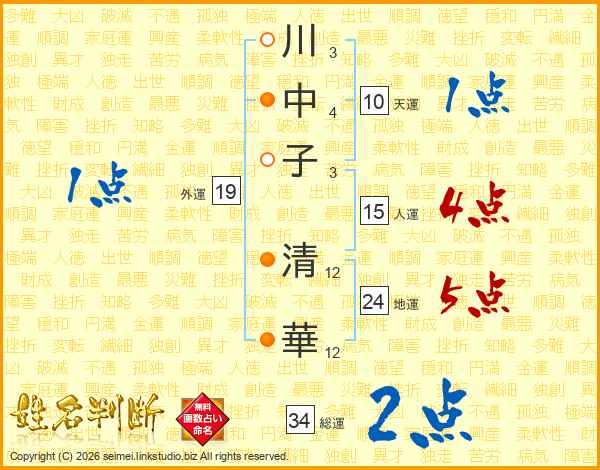 川中子清華さんの総運は34画の2点!