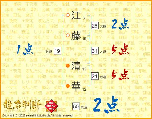 江藤清華さんの天運は26画の2点!