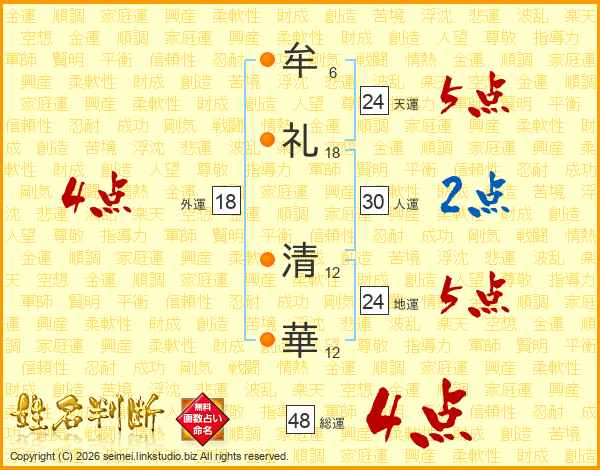 牟礼清華さんの外運は18画の4点!