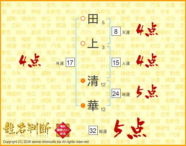 田上清華さんの総運は32画の5点!