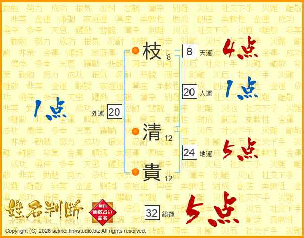 枝清貴さんの総運は32画の5点!