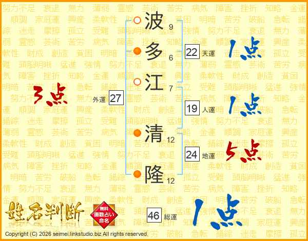 波(9画)多(6画)江(7画) 清(12画)隆(12画)