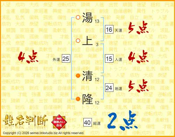 湯上清隆さんの総運は40画の2点!