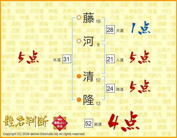 藤河清隆さんの総運は52画の4点!