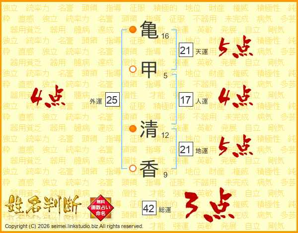 亀甲清香さんの地運は21画の5点!