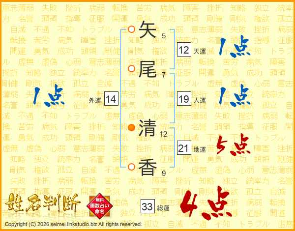 矢尾清香さんの外運は14画の1点!