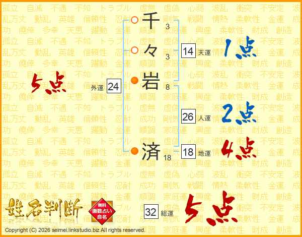 千々岩済さんの総運は32画の5点!