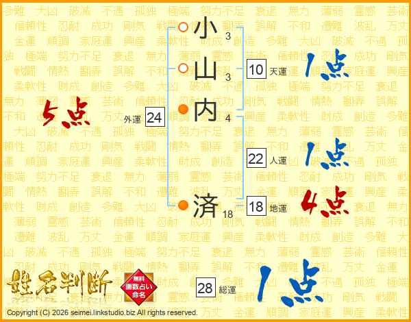 小山内済さんの総運は28画の1点!