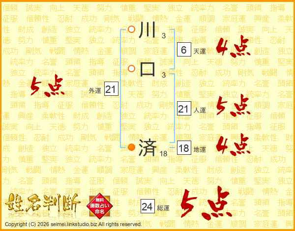 川口済さんの総運は24画の5点!
