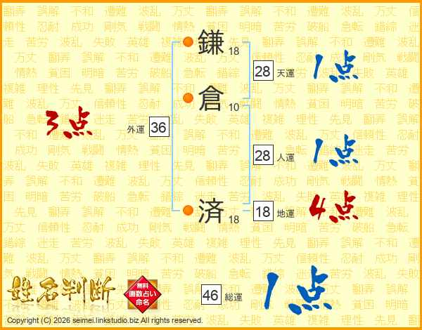 鎌倉済さんの総運は46画の1点!