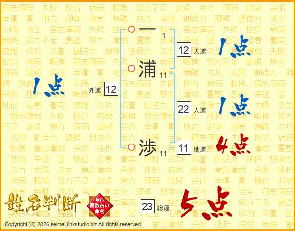 一浦渉さんの総運は23画の5点!
