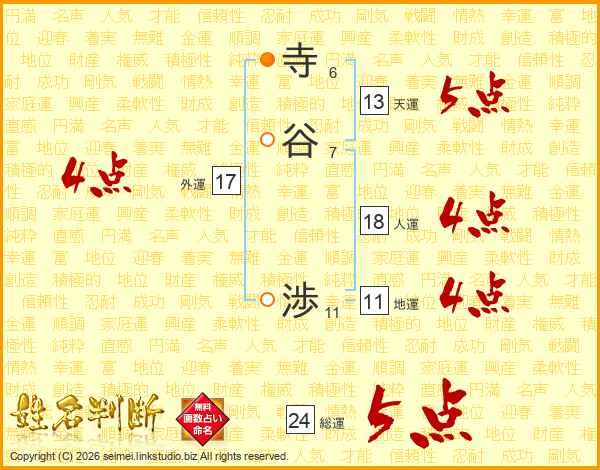 寺谷渉さんの総運は24画の5点!