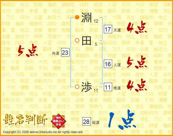 淵田渉さんの天運は17画の4点!