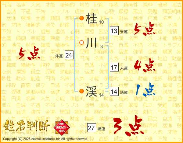 桂川渓さんの天運は13画の5点!