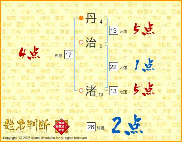 丹治渚さんの天運は13画の5点!